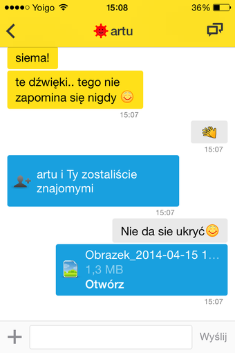 - zmieniony układ rozmów, emotikony, obsługa linków, przesyłanie plików, powiadomienia